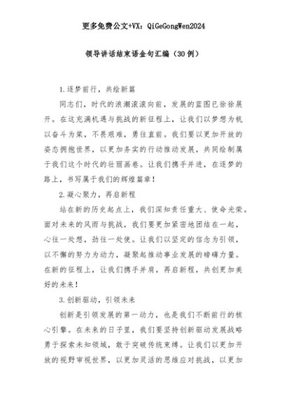 【七哥公文】2025年:领导讲话结束语金句汇编(30例)+更多免费公文+VX:QiGeGongWen2024+更多免费公文+VX:QiGeGongWen2024