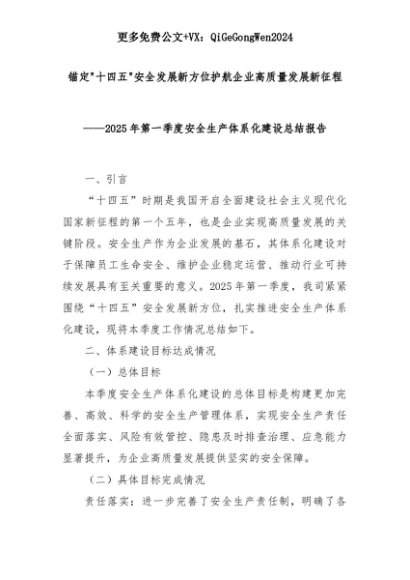 【七哥公文】2025年:锚定十四五安全发展新方位护航企业高质量发展新征程——2025年第一季度安全生产体系化建设总结报告+更多免费公文+VX:QiGeGongWen2024+更多免费公文+VX:QiGeGongWen2024