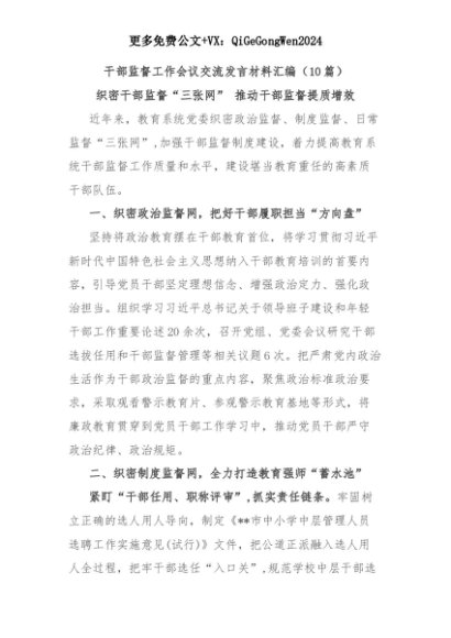 【七哥公文】2025年:(10篇)干部监督工作会议交流发言材料汇编+更多免费公文+VX:QiGeGongWen2024+更多免费公文+VX:QiGeGongWen2024