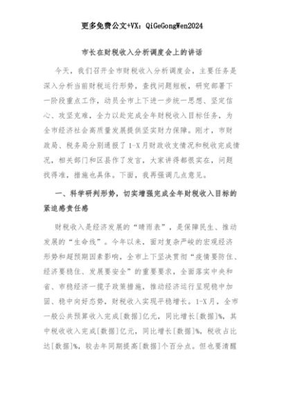 【七哥公文】2025年:市长在财税收入分析调度会上的讲话+更多免费公文+VX:QiGeGongWen2024+更多免费公文+VX:QiGeGongWen2024