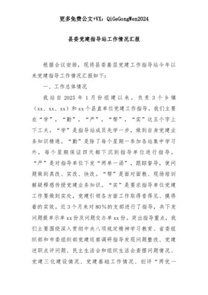 【七哥公文】2025年:县委党建指导站工作情况汇报+更多免费公文+VX:QiGeGongWen2024+更多免费公文+VX:QiGeGongWen2024