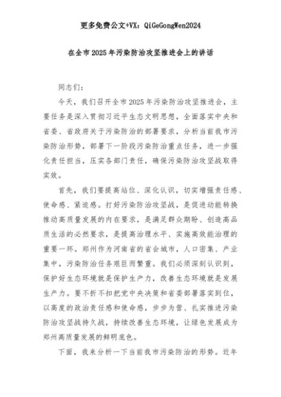【七哥公文】2025年:在全市2025年污染防治攻坚推进会上的讲话+更多免费公文+VX:QiGeGongWen2024+更多免费公文+VX:QiGeGongWen2024