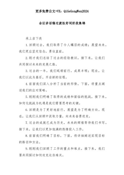 【七哥公文】2025年:会议讲话稿过渡性好词好段集锦+更多免费公文+VX:QiGeGongWen2024+更多免费公文+VX:QiGeGongWen2024