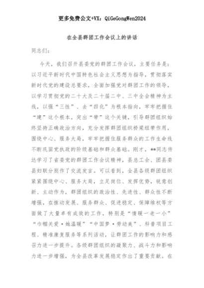 【七哥公文】2025年:在全县群团工作会议上的讲话+更多免费公文+VX:QiGeGongWen2024+更多免费公文+VX:QiGeGongWen2024