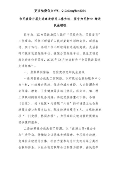 【七哥公文】2025年:市民政局开展先进事迹学习工作方法:坚守为民初心 增进民生福祉+更多免费公文+VX:QiGeGongWen2024+更多免费公文+VX:QiGeGongWen2024