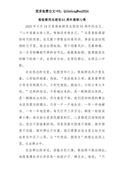 【七哥公文】2025年:焦裕禄同志逝世61周年感悟心得+更多免费公文+VX:QiGeGongWen2024+更多免费公文+VX:QiGeGongWen2024