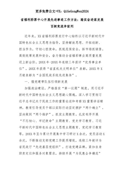 【七哥公文】2025年:省福利彩票中心开展先进事迹工作方法:踏实奋进谋发展 百舸竞流争前列+更多免费公文+VX:QiGeGongWen2024+更多免费公文+VX:QiGeGongWen2024