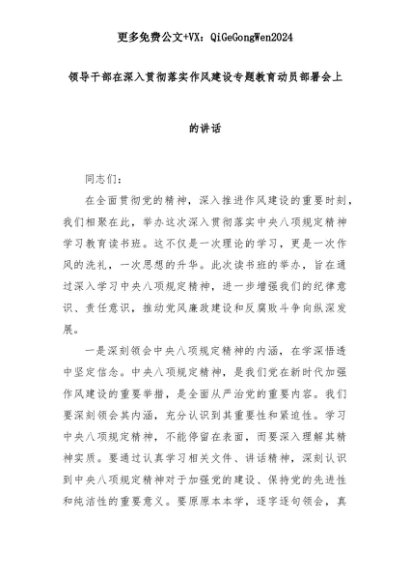 【七哥公文】2025年:领导干部在深入贯彻落实作风建设专题教育动员部署会上的讲话+更多免费公文+VX:QiGeGongWen2024+更多免费公文+VX:QiGeGongWen2024
