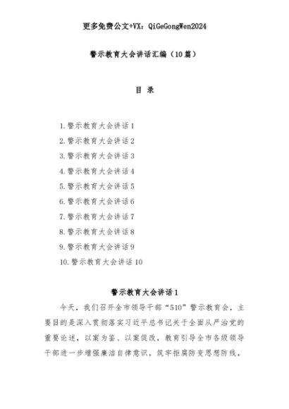 【七哥公文】2025年:(10篇)警示教育大会讲话汇编+更多免费公文+VX:QiGeGongWen2024+更多免费公文+VX:QiGeGongWen2024