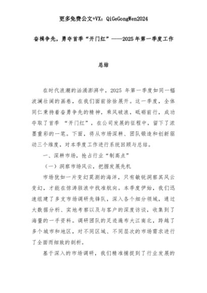 【七哥公文】2025年:奋楫争先,勇夺首季“开门红”——2025年第一季度工作总结+更多免费公文+VX:QiGeGongWen2024+更多免费公文+VX:QiGeGongWen2024