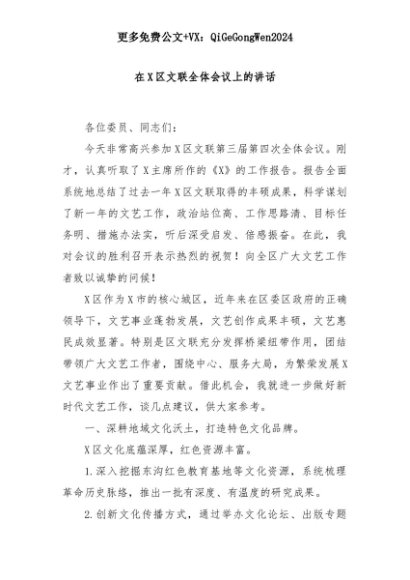 【七哥公文】2025年:在X区文联全体会议上的讲话+更多免费公文+VX:QiGeGongWen2024+更多免费公文+VX:QiGeGongWen2024
