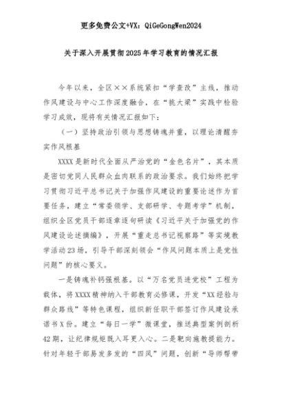 【七哥公文】2025年:关于深入开展贯彻2025年学习教育的情况汇报+更多免费公文+VX:QiGeGongWen2024+更多免费公文+VX:QiGeGongWen2024