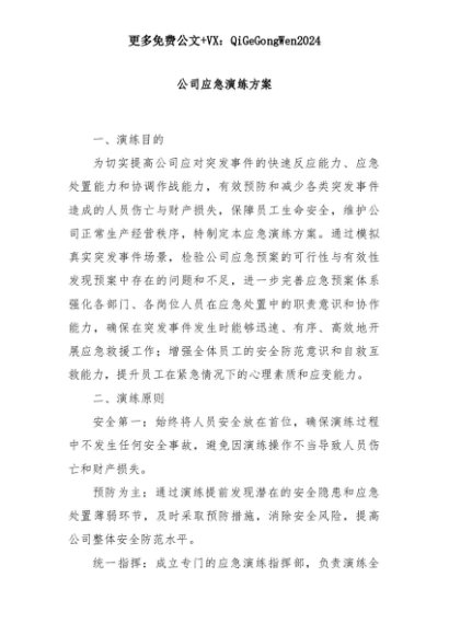 【七哥公文】2025年:公司应急演练方案+更多免费公文+VX:QiGeGongWen2024+更多免费公文+VX:QiGeGongWen2024