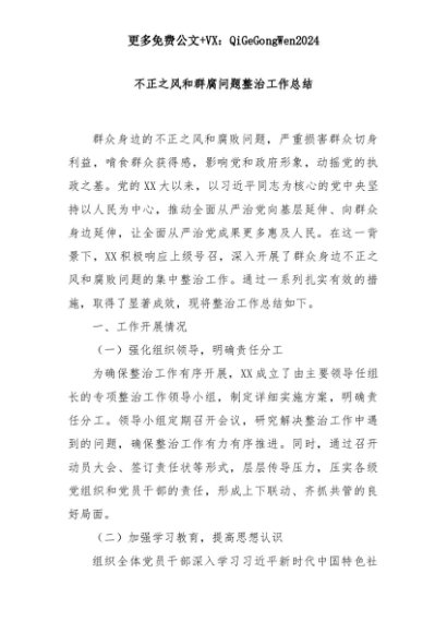 【七哥公文】2025年:不正之风和群腐问题整治工作总结+更多免费公文+VX:QiGeGongWen2024+更多免费公文+VX:QiGeGongWen2024