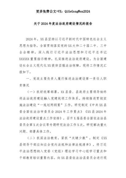 【七哥公文】2025年:关于2024年度法治政府建设情况的报告+更多免费公文+VX:QiGeGongWen2024+更多免费公文+VX:QiGeGongWen2024