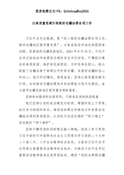 【七哥公文】2025年:以高质量党建引领做好边疆治理各项工作+更多免费公文+VX:QiGeGongWen2024+更多免费公文+VX:QiGeGongWen2024