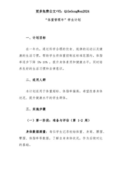 【七哥公文】2025年:“体重管理年”学生计划+更多免费公文+VX:QiGeGongWen2024+更多免费公文+VX:QiGeGongWen2024
