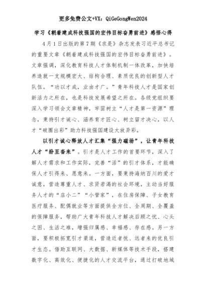 【七哥公文】2025年:学习《朝着建成科技强国的宏伟目标奋勇前进》感悟心得+更多免费公文+VX:QiGeGongWen2024+更多免费公文+VX:QiGeGongWen2024