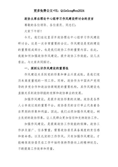 【七哥公文】2025年:政协主席在理论中心组学习作风建设研讨会的发言+更多免费公文+VX:QiGeGongWen2024+更多免费公文+VX:QiGeGongWen2024