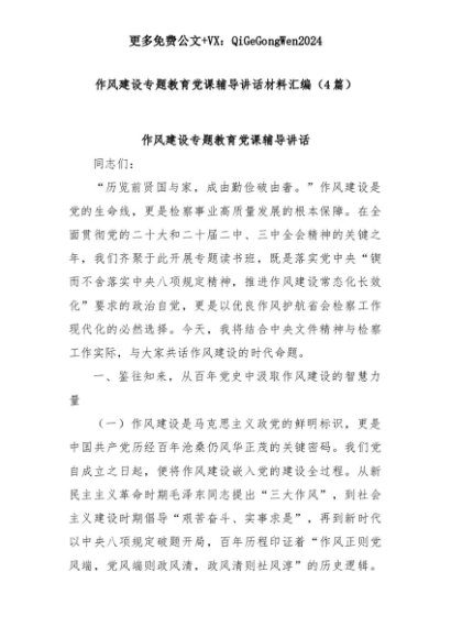 【七哥公文】2025年:(4篇)作风建设专题教育党课辅导讲话材料汇编+更多免费公文+VX:QiGeGongWen2024+更多免费公文+VX:QiGeGongWen2024
