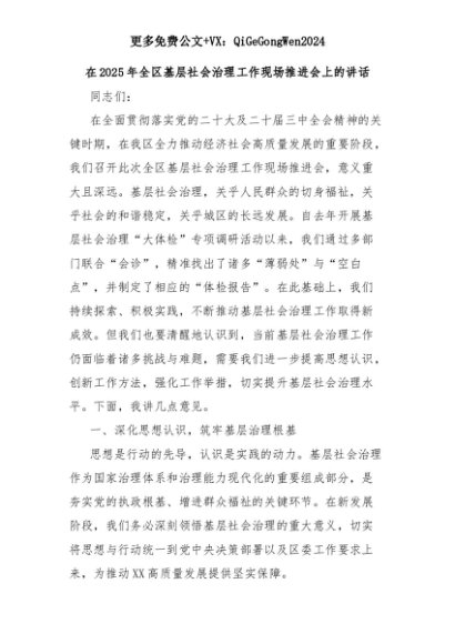 【七哥公文】2025年:在2025年全区基层社会治理工作现场推进会上的讲话+更多免费公文+VX:QiGeGongWen2024+更多免费公文+VX:QiGeGongWen2024