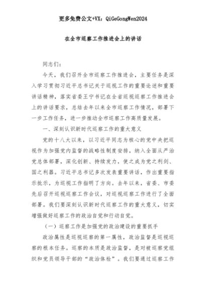 【七哥公文】2025年:在全市巡察工作推进会上的讲话+更多免费公文+VX:QiGeGongWen2024+更多免费公文+VX:QiGeGongWen2024