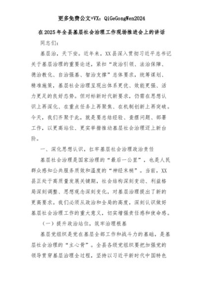 【七哥公文】2025年:在2025年全县基层社会治理工作现场推进会上的讲话+更多免费公文+VX:QiGeGongWen2024+更多免费公文+VX:QiGeGongWen2024