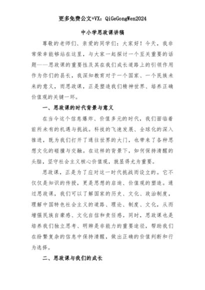 【七哥公文】2025年:中小学思政课讲稿+更多免费公文+VX:QiGeGongWen2024+更多免费公文+VX:QiGeGongWen2024