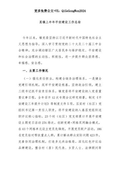【七哥公文】2025年:某镇上半年平安建设工作总结+更多免费公文+VX:QiGeGongWen2024+更多免费公文+VX:QiGeGongWen2024