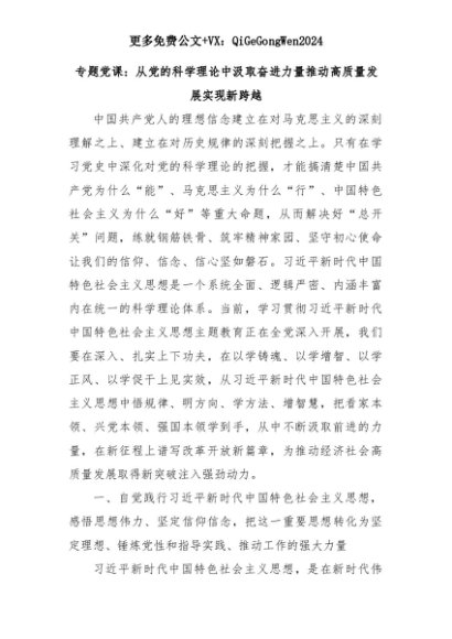 【七哥公文】2025年:专题党课:从党的科学理论中汲取奋进力量推动高质量发展实现新跨越+更多免费公文+VX:QiGeGongWen2024+更多免费公文+VX:QiGeGongWen2024