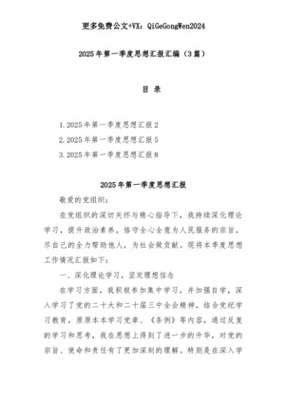 【七哥公文】2025年:(3篇)2025年第一季度思想汇报汇编+更多免费公文+VX:QiGeGongWen2024+更多免费公文+VX:QiGeGongWen2024