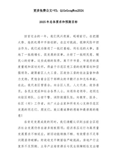 【七哥公文】2025年:2025年总体要求和预期目标+更多免费公文+VX:QiGeGongWen2024+更多免费公文+VX:QiGeGongWen2024