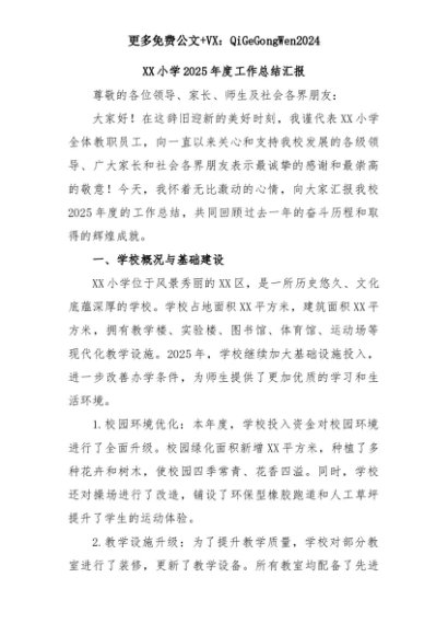 【七哥公文】2025年:XX小学2025年度工作总结汇报+更多免费公文+VX:QiGeGongWen2024+更多免费公文+VX:QiGeGongWen2024