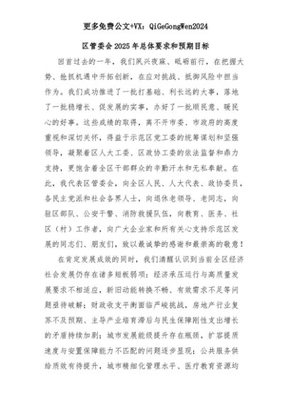【七哥公文】2025年:区管委会2025年总体要求和预期目标+更多免费公文+VX:QiGeGongWen2024+更多免费公文+VX:QiGeGongWen2024