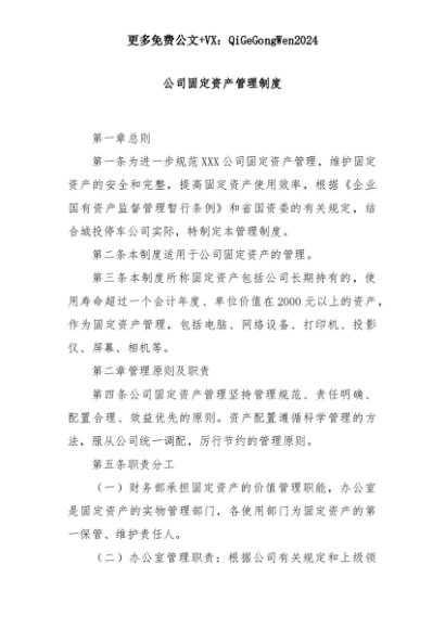 【七哥公文】2025年:公司固定资产管理制度+更多免费公文+VX:QiGeGongWen2024+更多免费公文+VX:QiGeGongWen2024