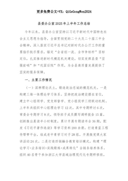 【七哥公文】2025年:县委办公室2025年上半年工作总结+更多免费公文+VX:QiGeGongWen2024+更多免费公文+VX:QiGeGongWen2024