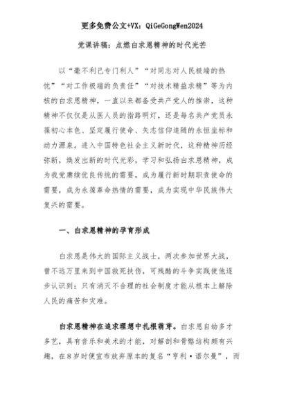 【七哥公文】2025年:党课讲稿:点燃白求恩精神的时代光芒+更多免费公文+VX:QiGeGongWen2024+更多免费公文+VX:QiGeGongWen2024
