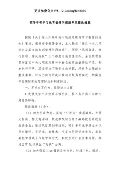 【七哥公文】2025年:领导干部学习教育查摆问题清单及整改措施+更多免费公文+VX:QiGeGongWen2024+更多免费公文+VX:QiGeGongWen2024