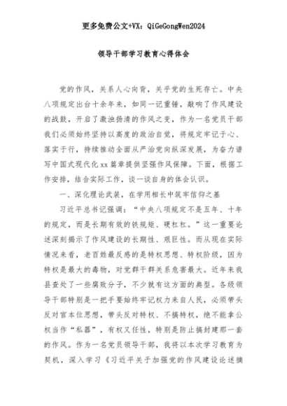 【七哥公文】2025年:领导干部学习教育心得体会+更多免费公文+VX:QiGeGongWen2024+更多免费公文+VX:QiGeGongWen2024