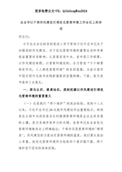 【七哥公文】2025年:在全市以干部作风建设引领优化营商环境工作会议上的讲话+更多免费公文+VX:QiGeGongWen2024+更多免费公文+VX:QiGeGongWen2024
