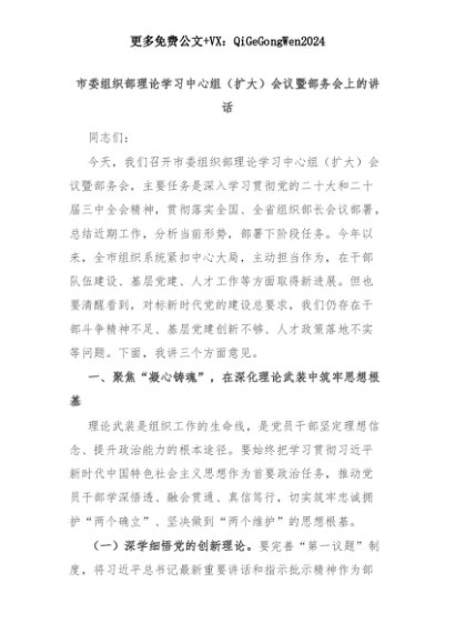 【七哥公文】2025年:市委组织部理论学习中心组(扩大)会议暨部务会上的讲话+更多免费公文+VX:QiGeGongWen2024+更多免费公文+VX:QiGeGongWen2024
