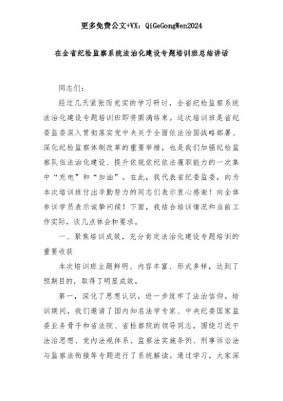 【七哥公文】2025年:在全省纪检监察系统法治化建设专题培训班总结讲话+更多免费公文+VX:QiGeGongWen2024+更多免费公文+VX:QiGeGongWen2024