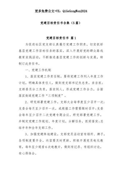 【七哥公文】2025年:(5篇)党建目标责任书合集+更多免费公文+VX:QiGeGongWen2024+更多免费公文+VX:QiGeGongWen2024
