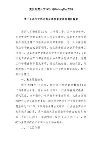 【七哥公文】2025年:关于X区行业协会商会高质量发展的调研报告+更多免费公文+VX:QiGeGongWen2024+更多免费公文+VX:QiGeGongWen2024