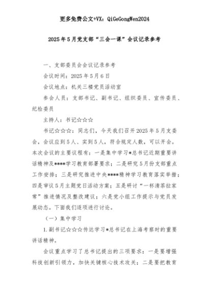 【七哥公文】2025年:2025年5月党支部“三会一课”会议记录参考+更多免费公文+VX:QiGeGongWen2024+更多免费公文+VX:QiGeGongWen2024