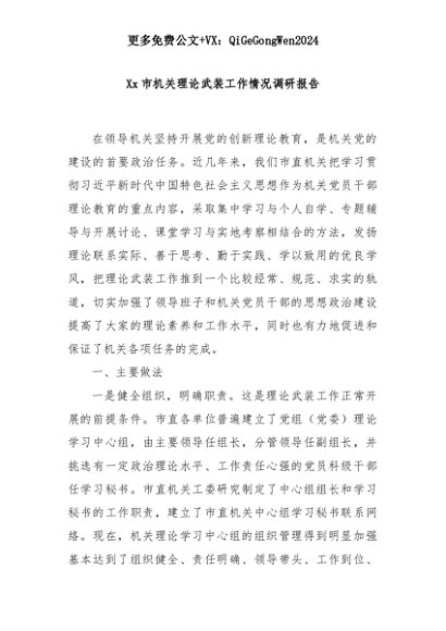 【七哥公文】2025年:Xx市机关理论武装工作情况调研报告+更多免费公文+VX:QiGeGongWen2024+更多免费公文+VX:QiGeGongWen2024