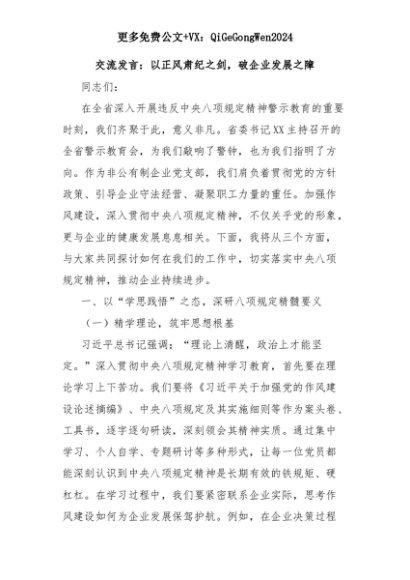 【七哥公文】2025年:交流发言:以正风肃纪之剑,破企业发展之障+更多免费公文+VX:QiGeGongWen2024+更多免费公文+VX:QiGeGongWen2024