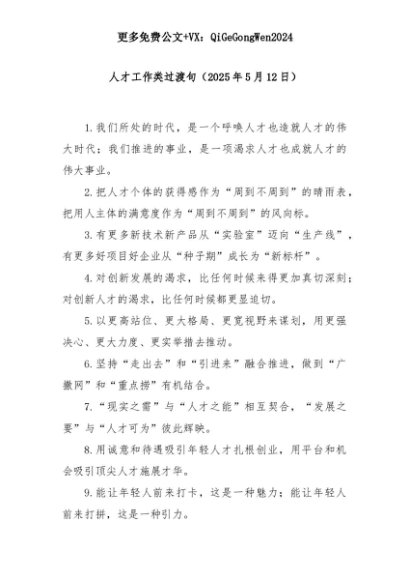 【七哥公文】2025年:人才工作类过渡句(2025年5月12日)+更多免费公文+VX:QiGeGongWen2024+更多免费公文+VX:QiGeGongWen2024