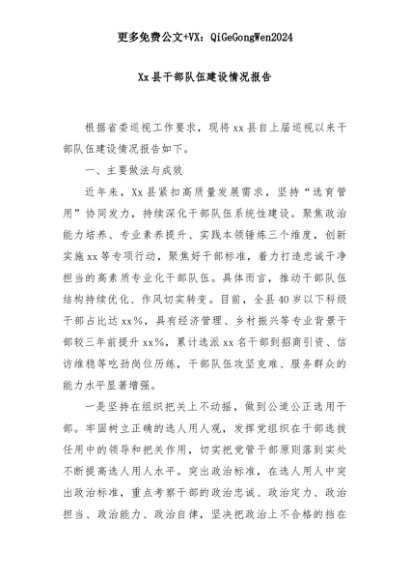 【七哥公文】2025年:Xx县干部队伍建设情况报告+更多免费公文+VX:QiGeGongWen2024+更多免费公文+VX:QiGeGongWen2024