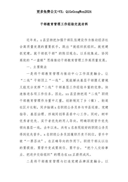 【七哥公文】2025年:干部教育管理工作经验交流材料+更多免费公文+VX:QiGeGongWen2024+更多免费公文+VX:QiGeGongWen2024